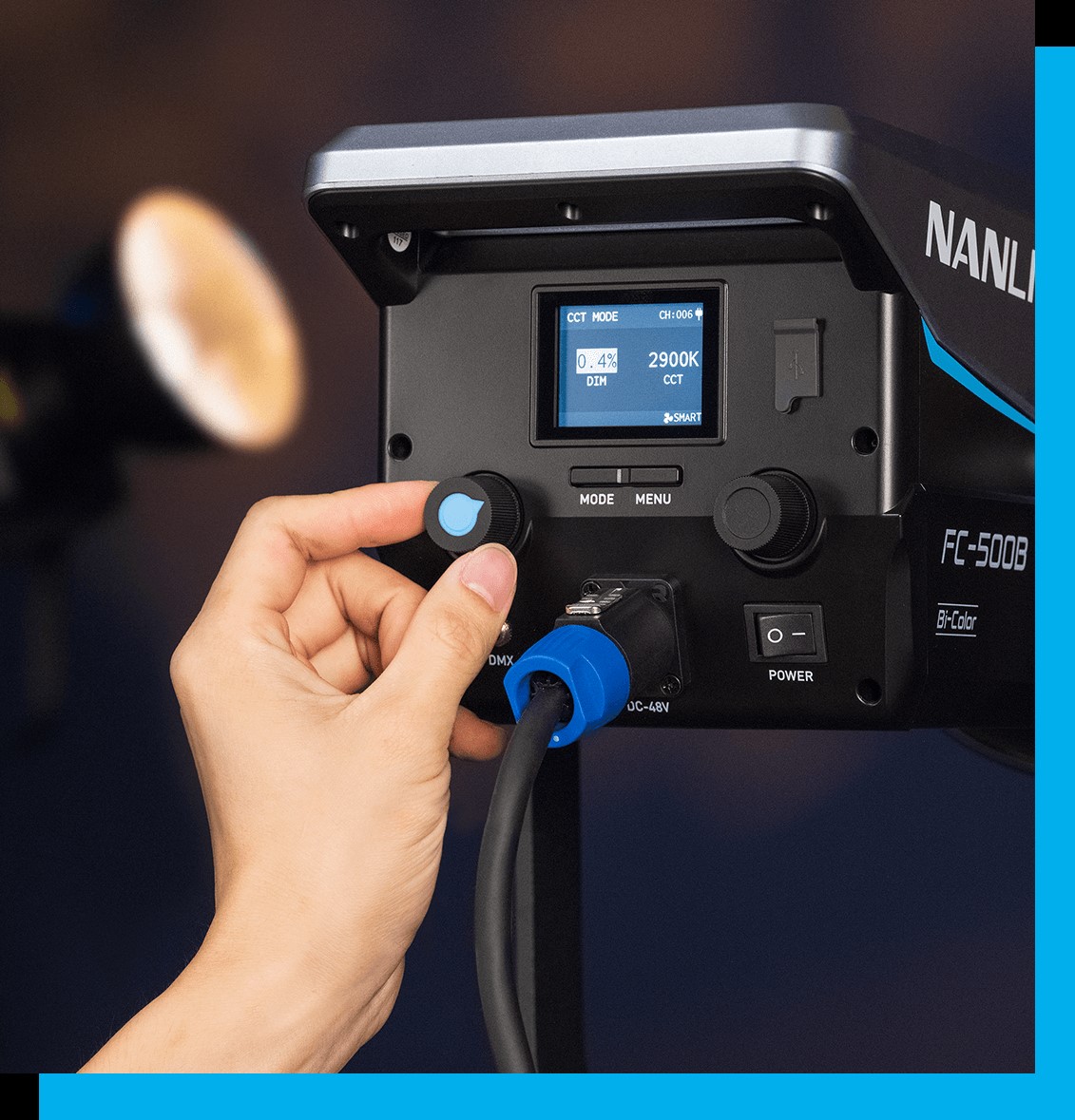 Nanlite FC-500B — светодиодный осветительный прибор с питанием от сети переменного тока. В приборе FC-500B используется светодиодный модуль с изменяемым диапазоном цветовой температуры от 2700K до 6500K. Это позволяет быстро сбалансировать естественное или искусственное освещение без использования компенсационных фильтров. При этом поддерживается высокий средний показатель CRI / TLCI 96/98, что обеспечивает точную цветопередачу.